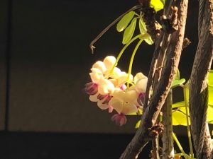 ベランダのアケビが満開です。